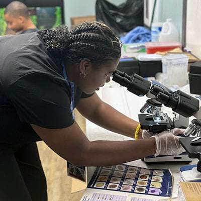 Learn from your teaching veterinarian as you practice vital skills, including using a microscope to conduct blood smear examinations, calculating prescription dosages, and proper suturing techniques.