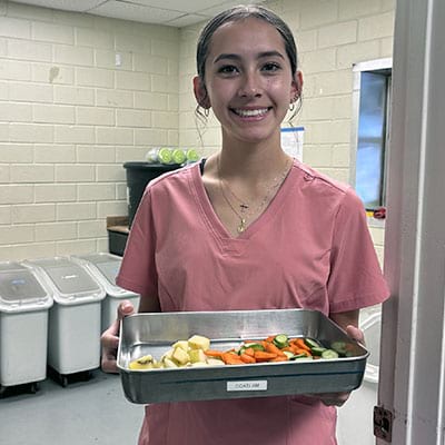 On your first day at the Texas Zoo, you’ll be split into three groups. Each group will take turns rotating through different learning activities on food preparation, enclosure maintenance, and animal enrichment.